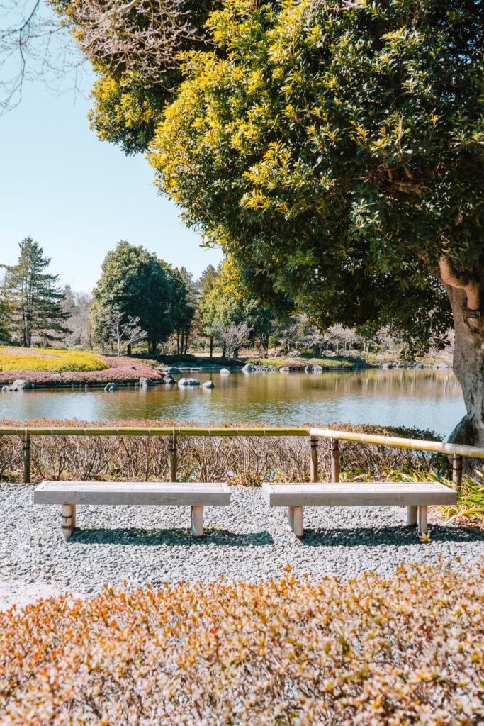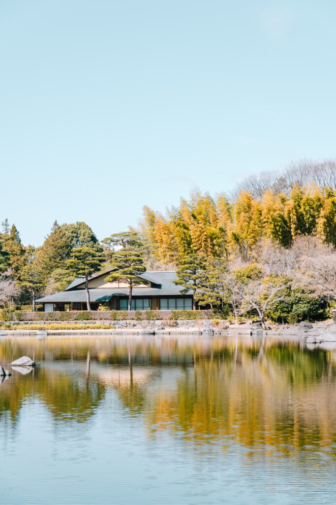 「とりあえず日本庭園まで歩く」。これがぼくのマイルート。知っているはずの風景も、行く度に写真に収めたくなります。特に晴天時は、水面に色が反転してくれるので、とても映えますよね。