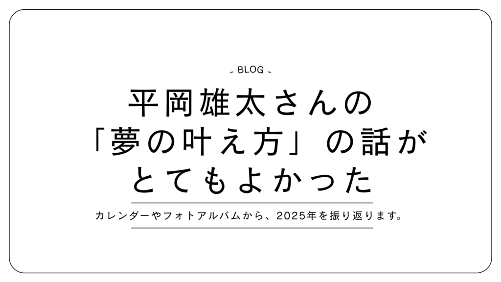 なんか急に哲学書っぽくなってきたので、そろそろ締めくくりましょう。ぼくは明日が仕事始めです。そんな自分にとって平岡さんの動画は、仕事と夢との距離感を考える、とてもいいきっかけになりました。絶妙なタイミングで公開してくださった平岡さん、ありがとうございます!