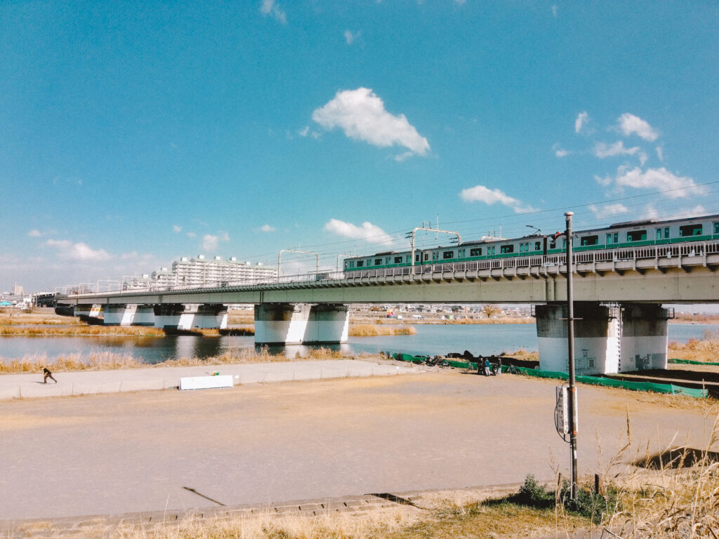川沿いを散歩。ちょうど電車が走ってきたところを撮れました。風が強かったけど、青空が広がっているだけで平和な気持ちに。