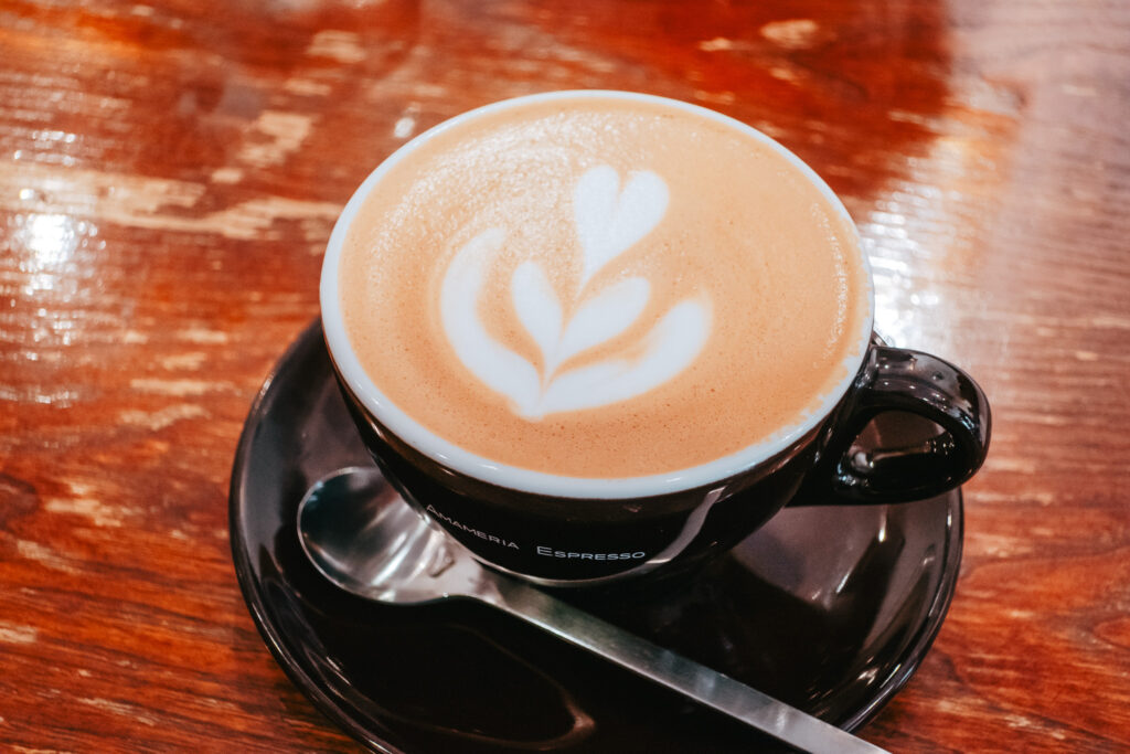 穴子の天ぷらをたらふく食べた後は、近くのカフェで「フラットホワイト」を飲んでみた。濃いめのエスプレッソにするか悩んだけど、「フラットホワイト」という響きが良くて、注文。レジの前で調べたところ、なるほど、エスプレッソとミルクを”いい感じ”に混ぜた飲み物らしい。とても美味しかった。