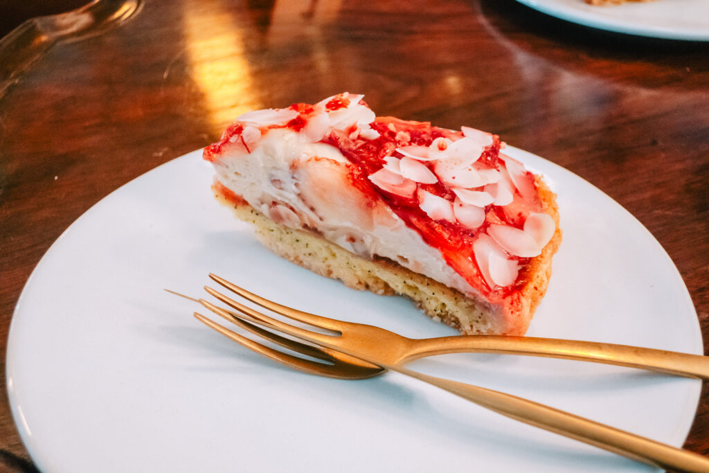 レモンタルトが看板メニューだが、今は「イチゴフェア」で、いつもよりイチゴをつかったタルトが多いらしい。2分ほど悩んで、イチゴのタルトに決めた。商品名や具材の詳細を覚えていないあたり、我ながらタルト初心者である。