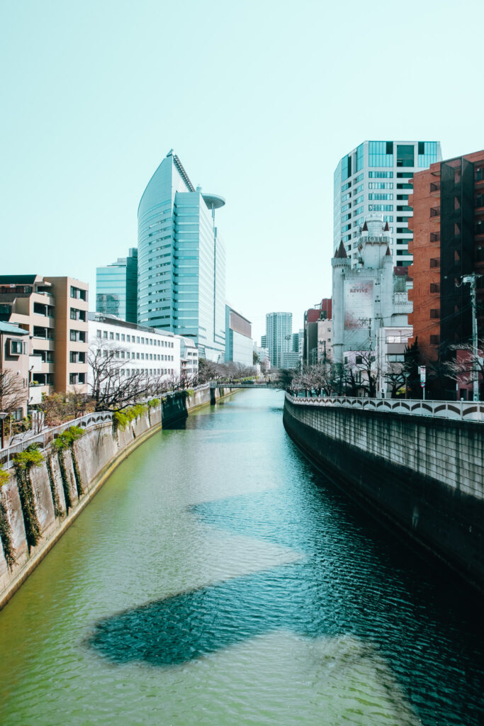 目黒川。たしかに桜が咲いたらきれいそうだが…。川それ自体は濁っている。川の色を変えているのはぼくたち人間かもしれない。でも青空がある限りごまかせてしまう。それから、目黒川沿いは、歩道が整備されているわけではなかった。だから、のんきに歩くというよりも、ランナーとかクルマとかに注意しながら歩く必要がありそう。